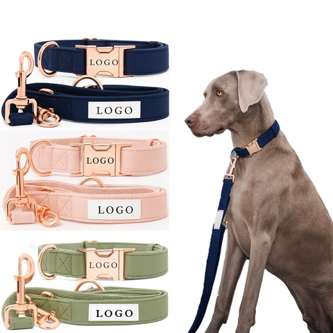 내구성 밝고 세련된 부드러운 비건 가죽 칼라 개인화 된 애완 동물 공급 액세서리 가죽 개 칼라 가죽 버클과 가죽 끈